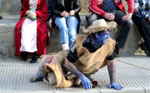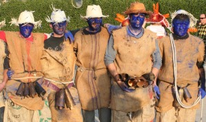 Los cherros son hombres vestidos con viejos sacos, la cara pintada de azulete y sonoros cencerros, que paseana por las calles tiznando la cara de azulete y asustando a los vecinos, que atentos permanecen al desfile de carnaval.